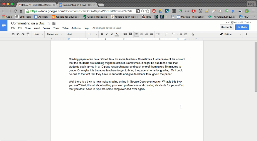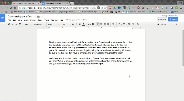 Open up a paper that you need to provide feedback on and use the shortcuts that you have created.