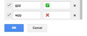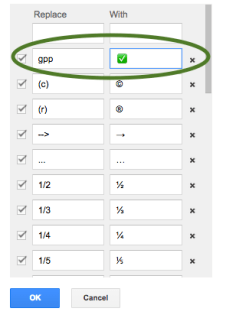 Once you type gpp in the replace box, paste the green check mark you copied from the blank Google document. Then hit the OK button.