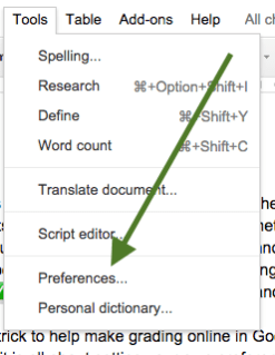 Copy the inserted check mark on your blank Google Document so that the shortcut can be created. To do this, click Preferences under the Tools menu.