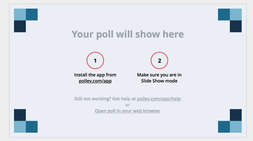 Important to Note: The actual poll question will not show until you are in present mode of your slide presentation. While in editing mode, you will see the following: