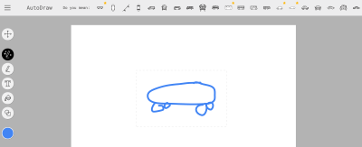 For instance, I drew the following image from my laptop. On the top of the screen, it predicted that it might be a skateboard, or a bus, or a car or a… Then I am able to tell it what I was wanting it to be – In this case, I wanted it to be a car. I could then change color of the image, and if I wanted, I could also add other content with it.