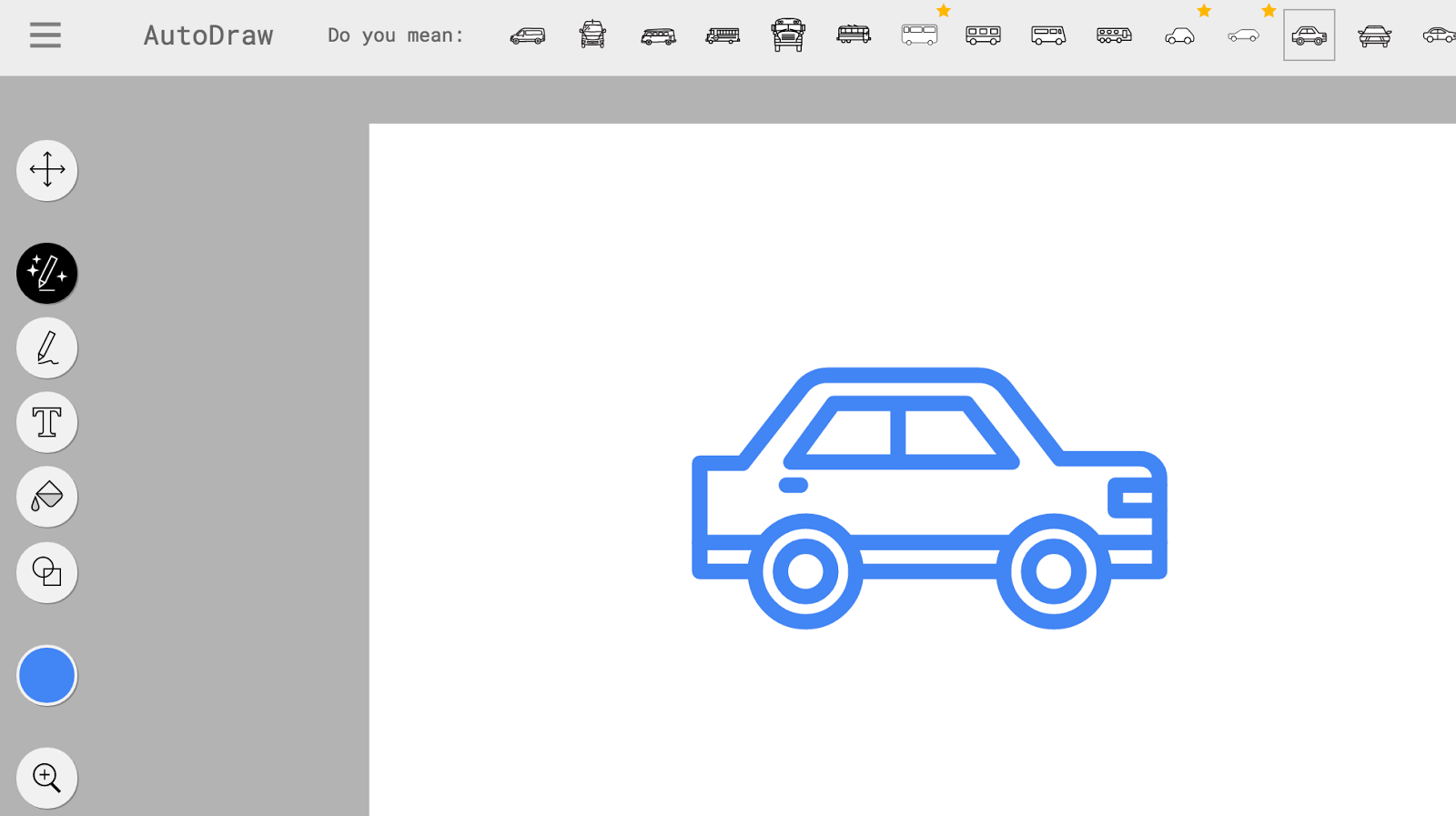 For instance, I drew the following image from my laptop. On the top of the screen, it predicted that it might be a skateboard, or a bus, or a car or a… Then I am able to tell it what I was wanting it to be – In this case, I wanted it to be a car. I could then change color of the image, and if I wanted, I could also add other content with it.