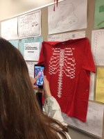 The last station dealt with augmented reality. We had purchased two t-shirts (Virtuali-Tee from Curiscope, a company from over the pond), that allowed for augmentation of a body. By using their app and scanning the shirt with the mobile device, students were able to take a augmented look into the body. Students seemed to enjoy this aspect.