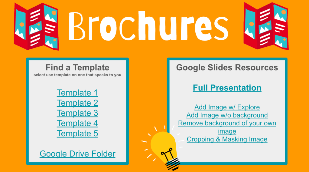 There are a couple of tools out there that help with creating brochures or infographics from pre-made templates. Sometimes, it might make sense to create a similar product in Google Slides. This could be because you might need the ease of collaboration. Sometimes it might be due to the fact that your district does not have a signed agreement with the edtech tool. Regardless of the issue, if you find yourself in a situation where you would like to use Google Slides, don’t assume students know how to use the tool beyond adding a slide, adding text in a textbox field, and grabbing pictures
