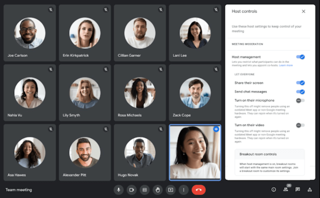 The host now has the ability to mute video and microphone from all participants at once. This can be helpful when a student forgets to mute themselves. The image below is from the Google for Education team demonstrating the muting capabilities.