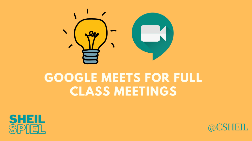 There have been a couple of times now where I have needed to meet with a particular graduation class. Rather than having over 300 students all pile into the theater, ran a Google Meet session. Advisors of that particular class were sent a Google Meet link to join and projected me into their classrooms. Students then had the ability to follow along and complete the task at hand that I was demonstrating. What also helped was the fact that these students were spaced out throughout the school building. So, having 300 students complete tasks at the same time throughout the building is more successful than having 300 students in the theater accessing one access point.