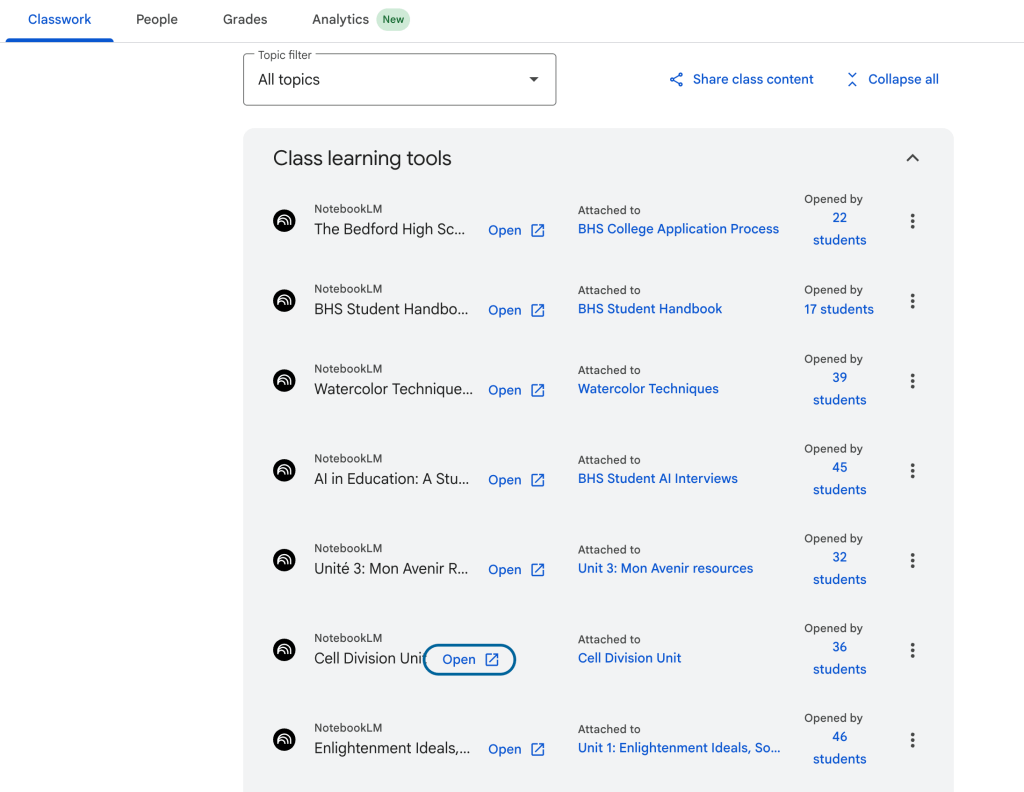 In order to continue to be thoughtful and deliberate, a NotebookLM resource page has been created for students (also made one for our staff). Students can find videos highlighted different features of the NotebookLM in 90 seconds or less.