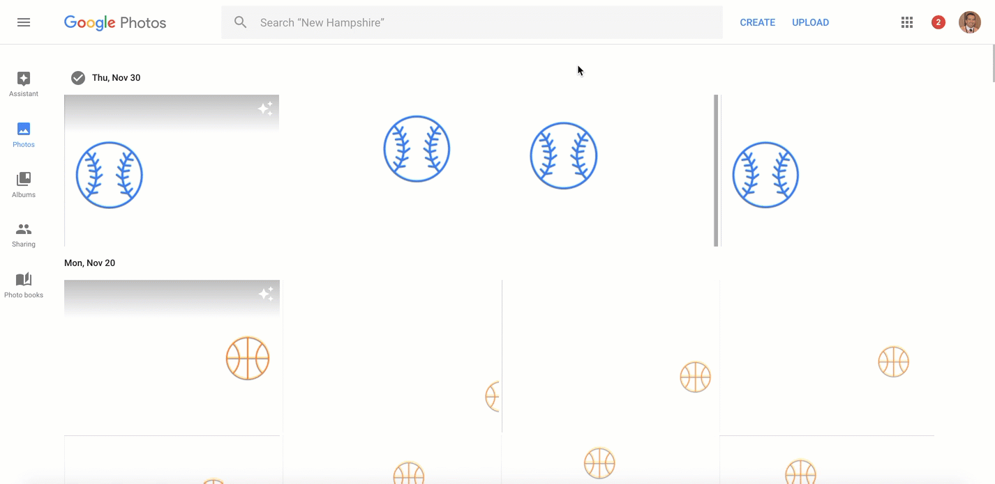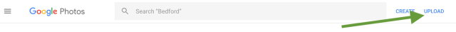 • Once in Google Photos, choose upload on the top right corner