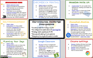 I was inspired to produce a Chromebook challenge after hearing about how Lee’s Summit R-7 School District created a Chromebook challenge for their students. Their great resource can be found on their technology website HERE. What I like about what they accomplished is that depending on the grade level, different tasks/reminders were given to the students.