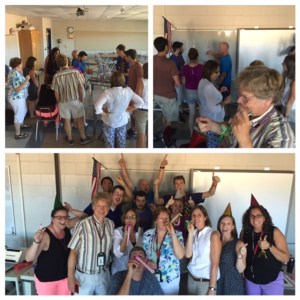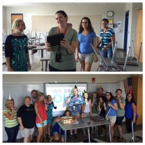 We then followed up with some more directions and broke staff up into the seven groups (thanks Zanna). The groups went to their designated spots and the game started. Once the staff broke into their box, they found some celebratory items to wear (celebrating the school turning 10). We all then meet back in the theater to talk about the activity as a whole group.